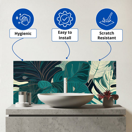 Tropical Jungle Leaf Pattern Glass Bathroom Splashback