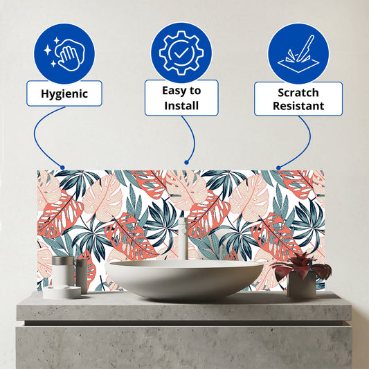 Tropical Leaf Pattern Glass Bathroom Splashback