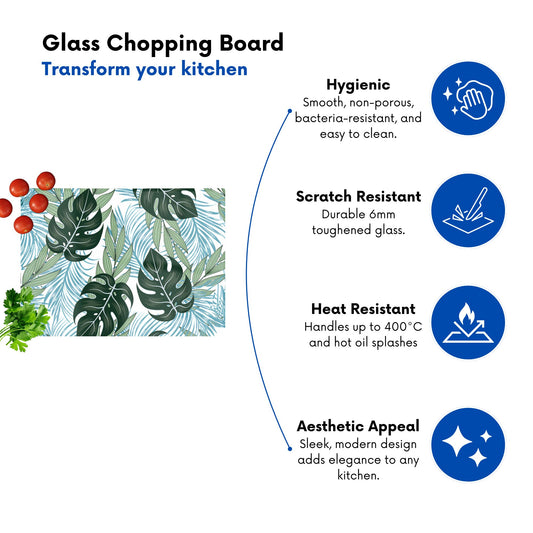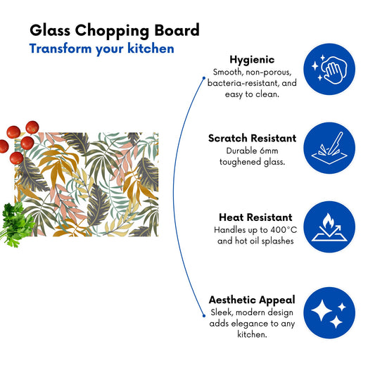Tropical Pattern Bright Plants Flowers Glass Chopping Board