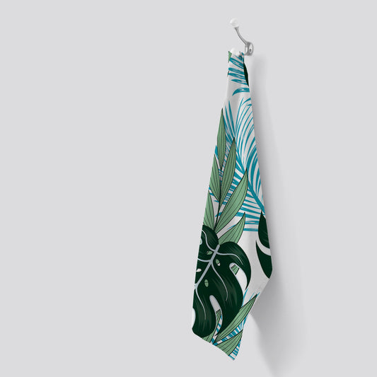 Tropical Pattern With Bright Plants And Flowers Tea Towel