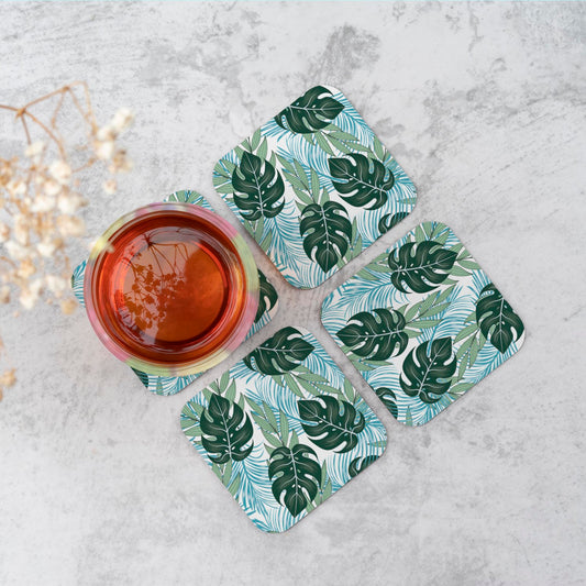 Tropical Pattern With Bright Plants And Flowers Coasters
