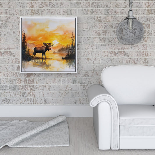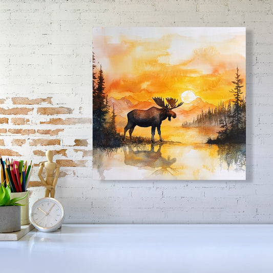 Watercolour Moose At Sunset Glass Bathroom Splashback