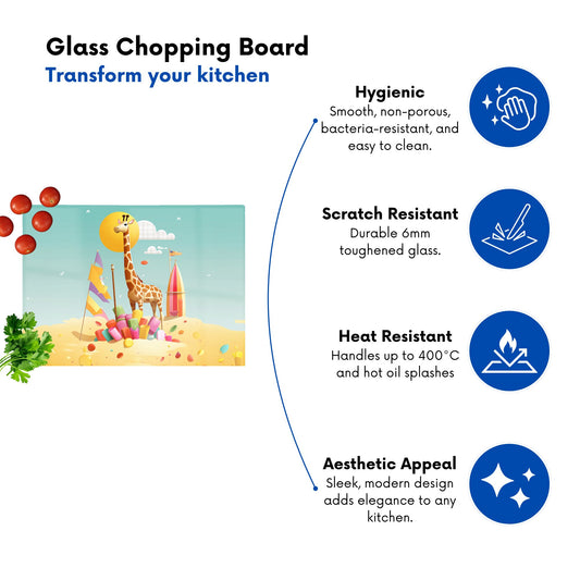 A Giraffe On A Beach Holiday Glass Chopping Board