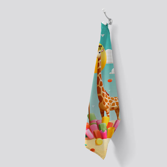 A Giraffe On A Beach Holiday Tea Towel