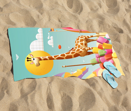 A Giraffe On A Beach Holiday Beach Towel
