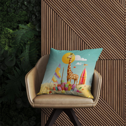 A Giraffe On A Beach Holiday Cushions