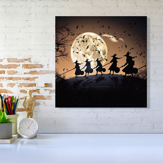 A Group Of Witches Riding Broomsticks Canvas