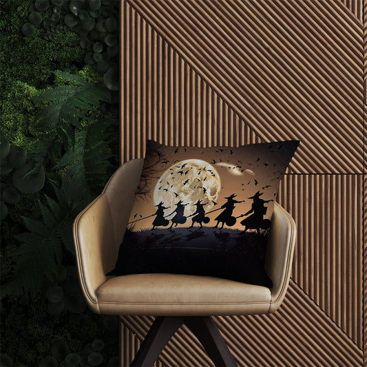 A Group Of Witches Riding Broomsticks Cushions