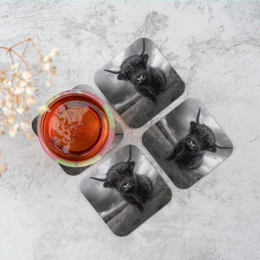 Black And White Highland Cow Coasters