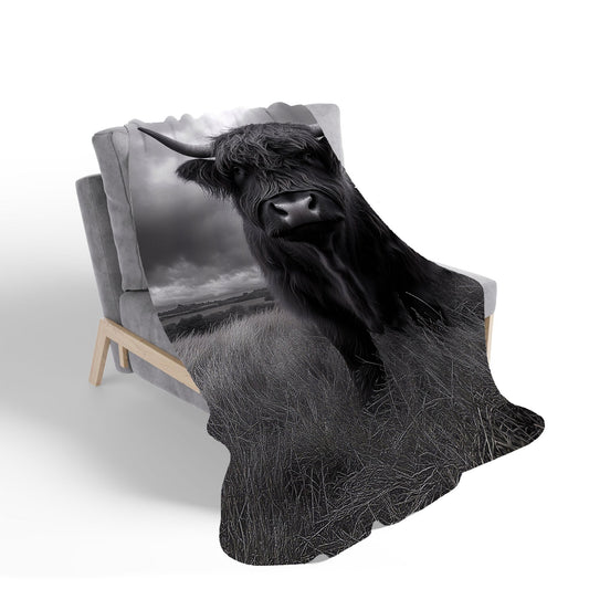Black And White Highland Cow Sherpa Blanket