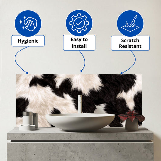 Black And White Cow High Print Glass Bathroom Splashback