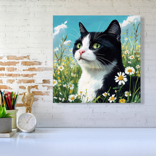 Black And White Cat In A Summer Meadow Canvas