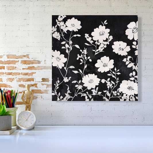 Black And White Floral Silhouette Canvas