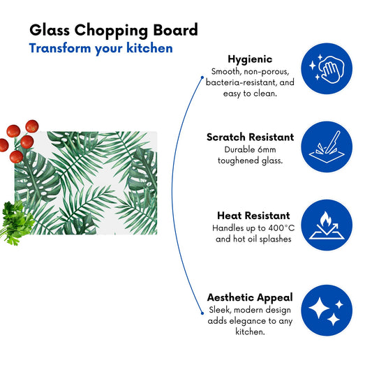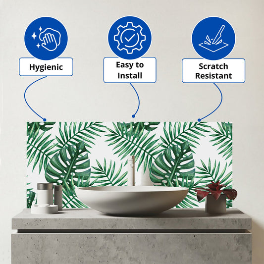 Watercolour Tropical Leaves Glass Bathroom Splashback