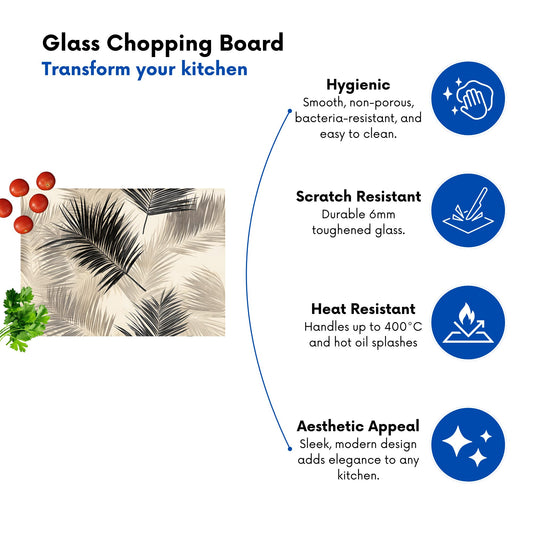 Black And White Tropical Palm Leaves Glass Chopping Board