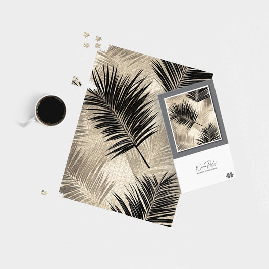 Black And White Tropical Palm Leaves Jigsaw Puzzle