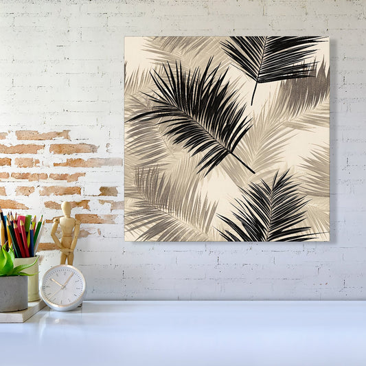 Black And White Tropical Palm Leaves Glass Bathroom Splashback
