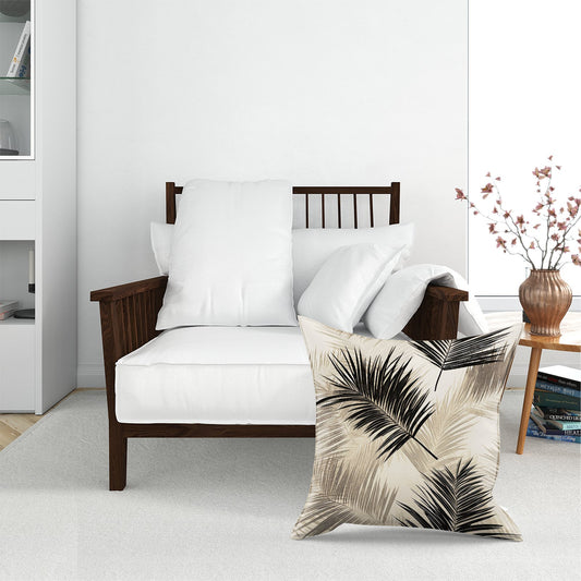 Black And White Tropical Palm Leaves Outdoor Cushion