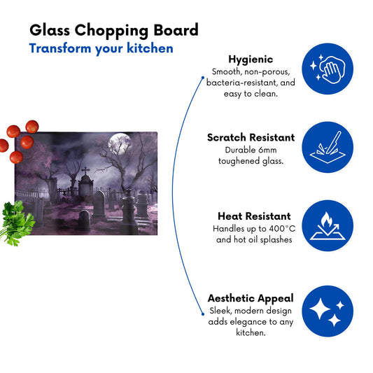 Witchs Moonlit Cemetery Design Glass Chopping Board