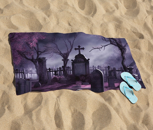 Witchs Moonlit Cemetery Design Beach Towel