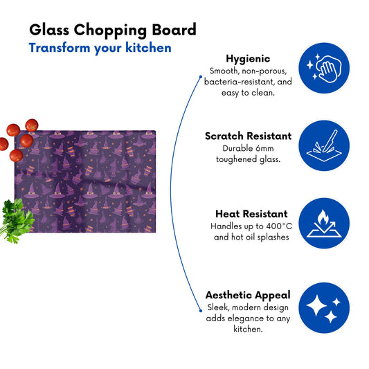 Witch Hats And Broomsticks Glass Chopping Board