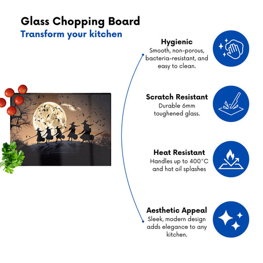 Witches Riding Broomsticks Glass Chopping Board