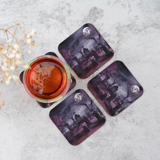 Witchs Moonlit Cemetery Design Coasters