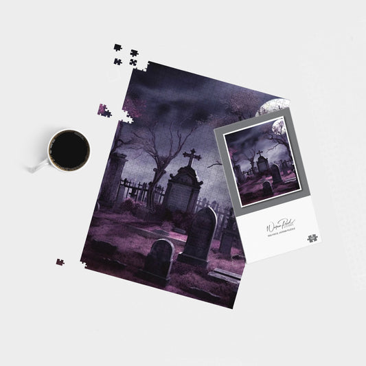 Witchs Moonlit Cemetery Design Jigsaw Puzzle