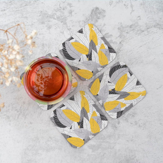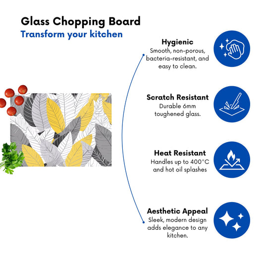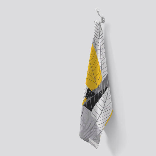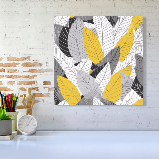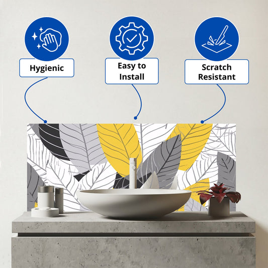 Yellow Grey Feather Leaves Glass Bathroom Splashback
