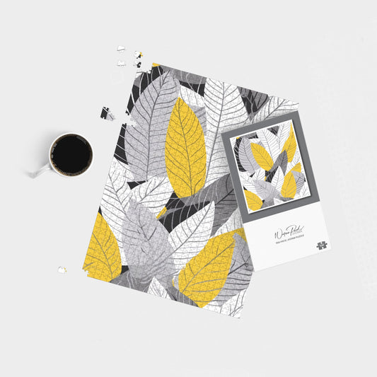 Yellow Grey Feather Leaves Jigsaw Puzzle