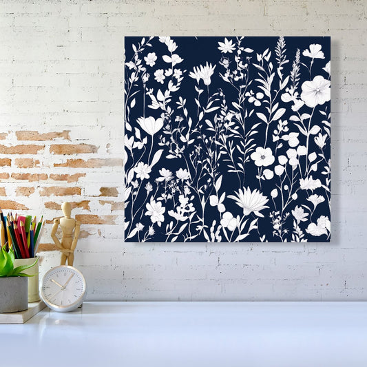 Blue And White Floral Silhouette Glass Bathroom Splashback