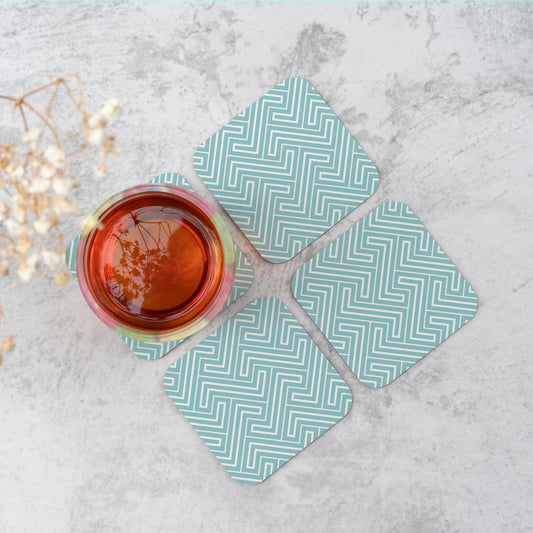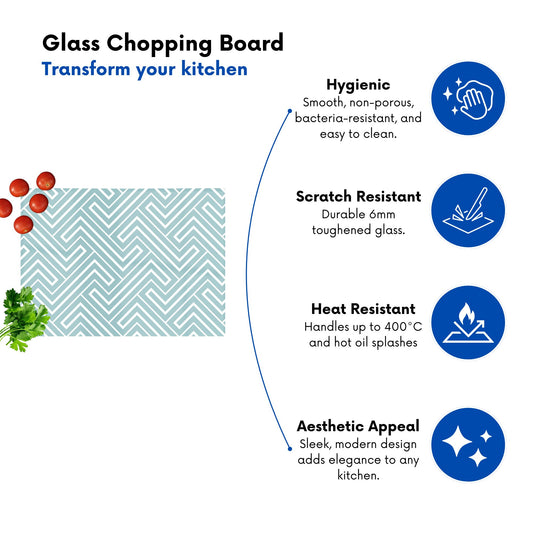Blue And White Geometric Pattern Glass Bathroom Splashback