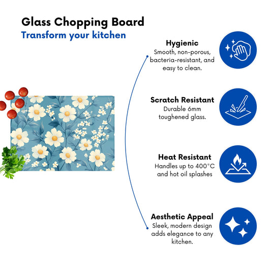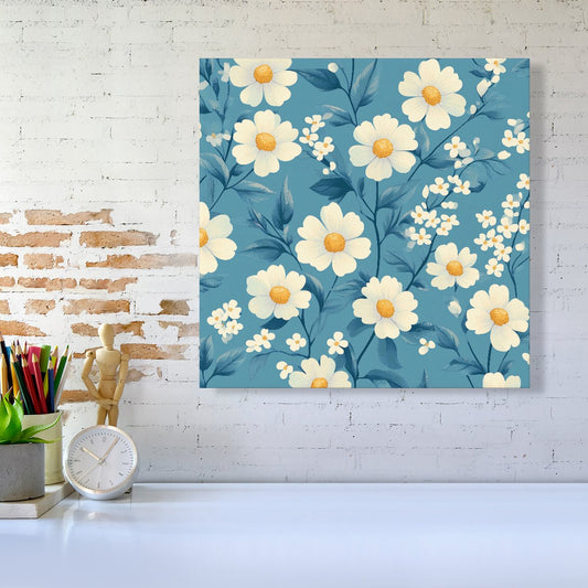 Blue And White Spring Daisies Glass Bathroom Splashback