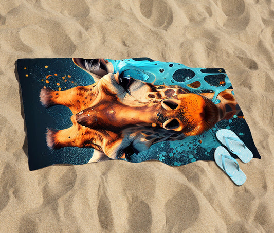 Blue Giraffe Face Splashart Beach Shopper Tote Bag