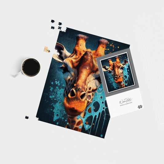 Blue Giraffe Face Splashart Jigsaw Puzzle