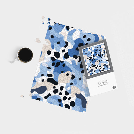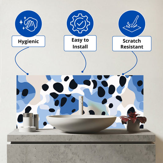 Blue Camouflage Pattern Glass Bathroom Splashback