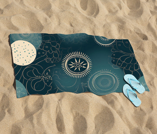 Blue Gold Moon and Sun Beach Shopper Tote Bag