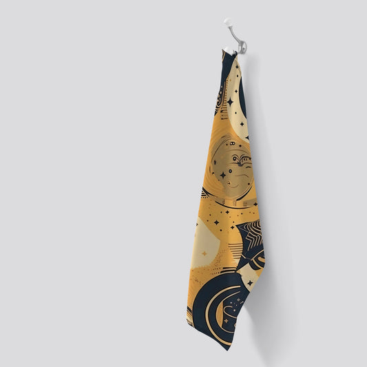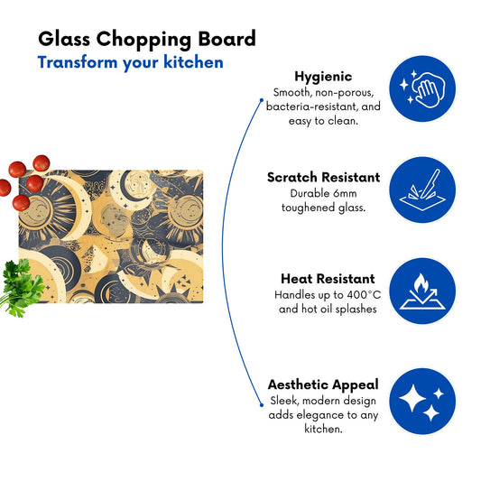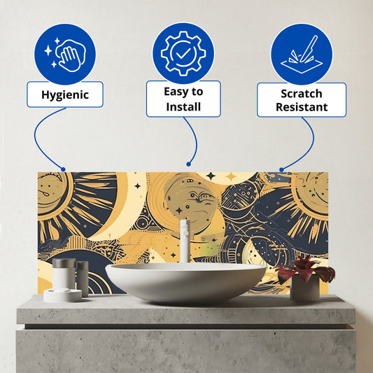 Blue Gold Moon and Sun Glass Bathroom Splashback