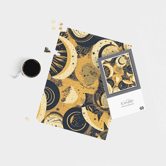 Blue Gold Moon and Sun Jigsaw Puzzle