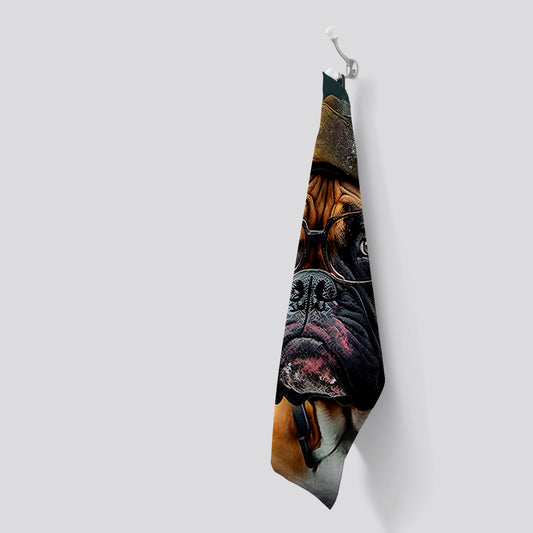 Boxer Dog With Glasses Splashart Tea Towel