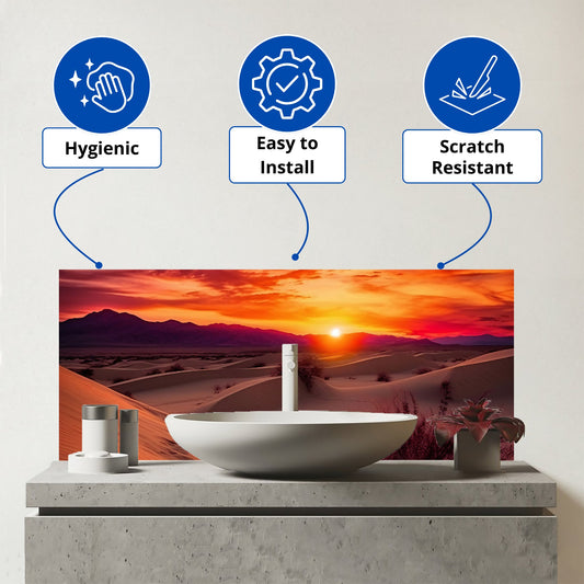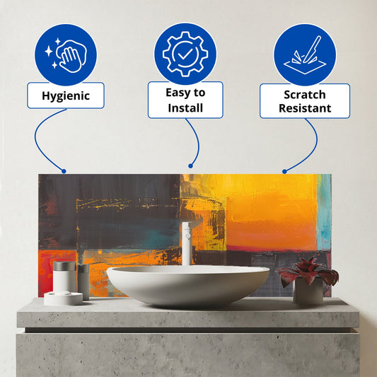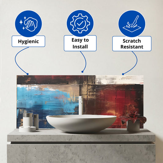 Rustic Harmony In Bold Colours Glass Bathroom Splashback