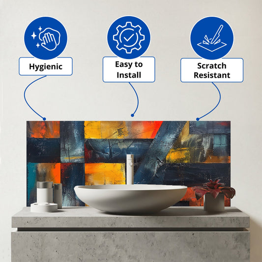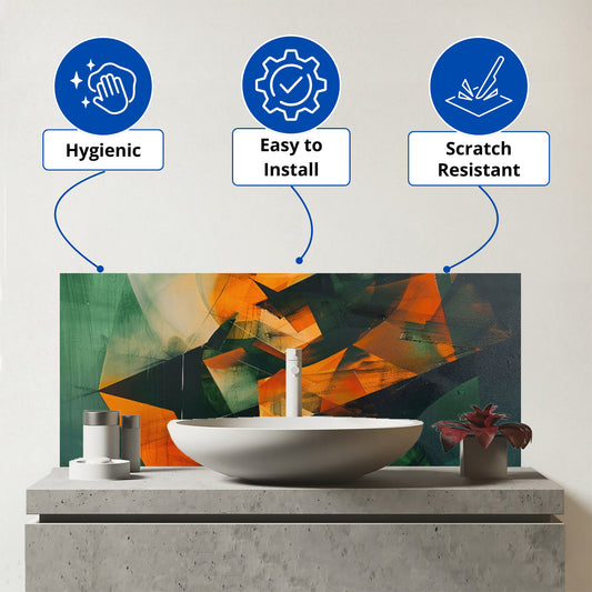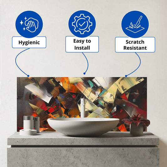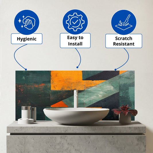 Geometric Interplay: Abstract Patterns Glass Bathroom Splashback