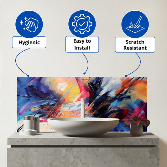 Serene Explosion: Calm Amidst Colours Glass Bathroom Splashback