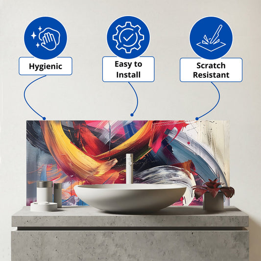 Swirling Symphony Of Colours Glass Bathroom Splashback