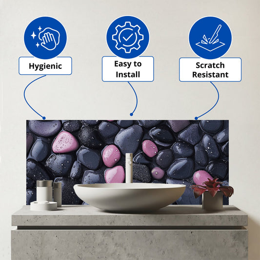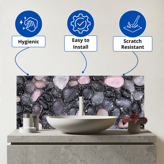 Glossy Pebbles in Soft Hues Glass Bathroom Splashback