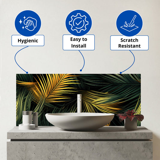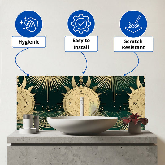 Abstract Green Gold Moon Pattern Glass Bathroom Splashback