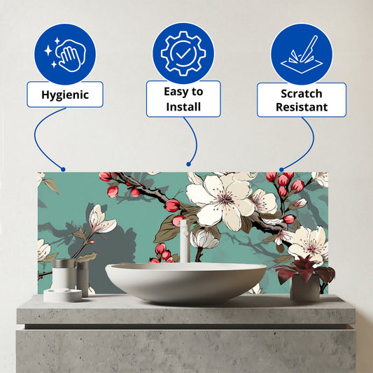 Pink Blossom Asian Design Glass Bathroom Splashback