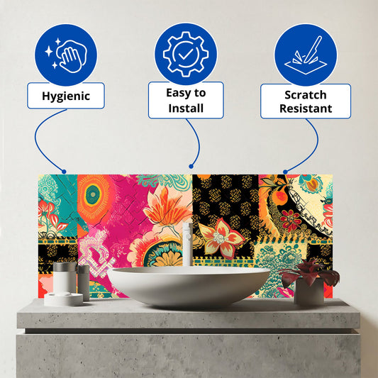 Patchwork Mixed Textiles Glass Bathroom Splashback