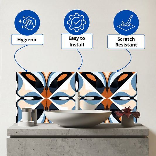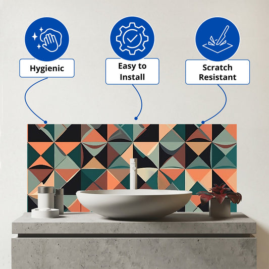 Brown And Blue Geometric Pattern Glass Bathroom Splashback