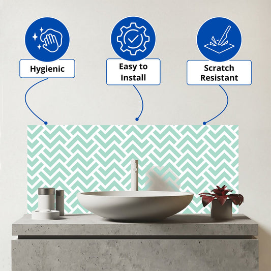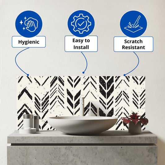 Hand Drawn Chevron Pattern Glass Bathroom Splashback